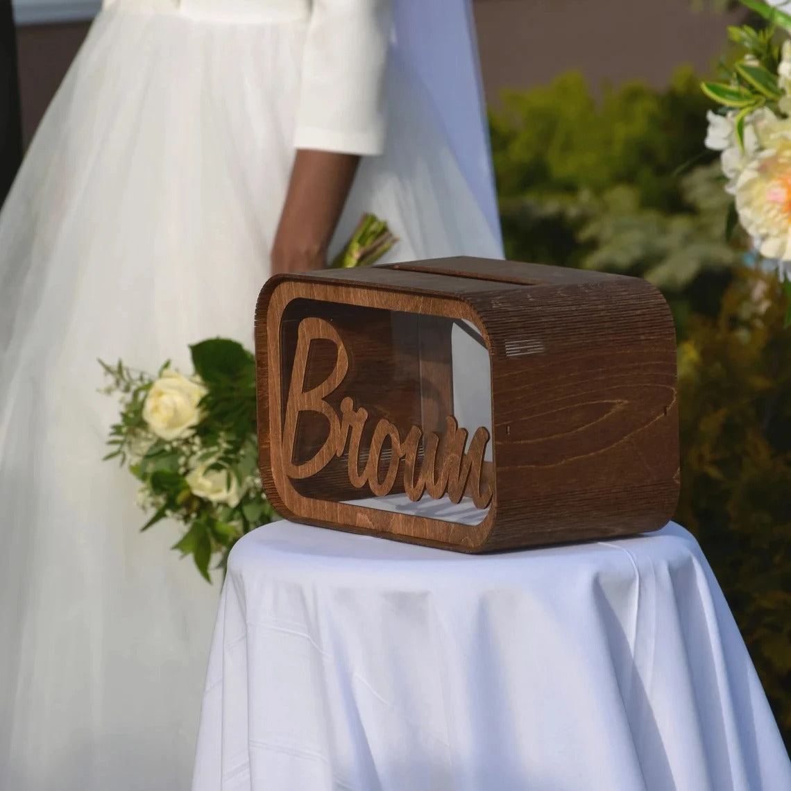 Add your name to this handcrafted wedding card box and instantly elevate your gift table. A meaningful and functional piece, it welcomes every heartfelt note and generous gesture in style.