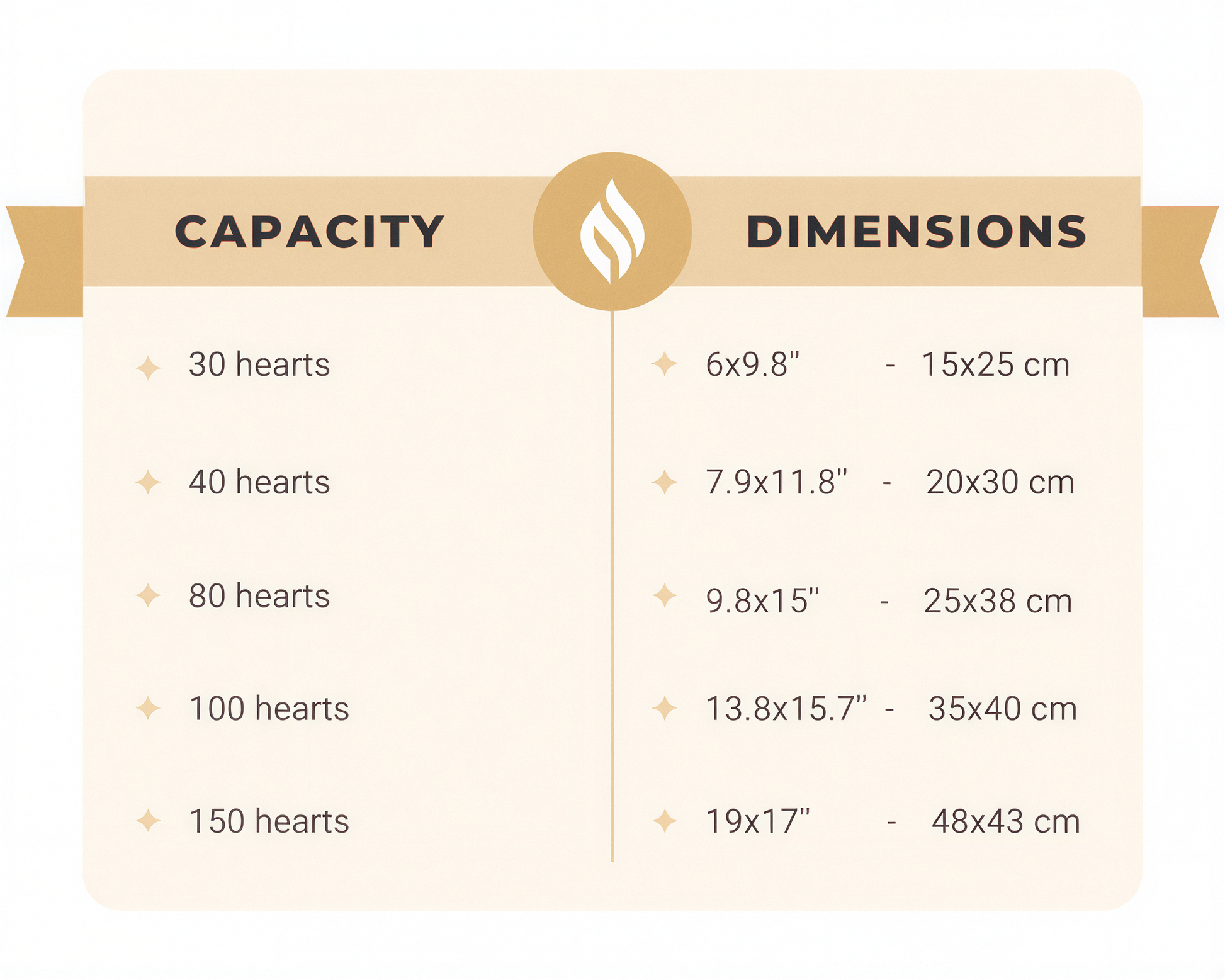Our Signature Heart Guest Book comes in 6 different sizes, each with its own capacity. The 100 hearts variant holds 100 hearts, the 200 hearts variant holds 200 hearts, and so on!