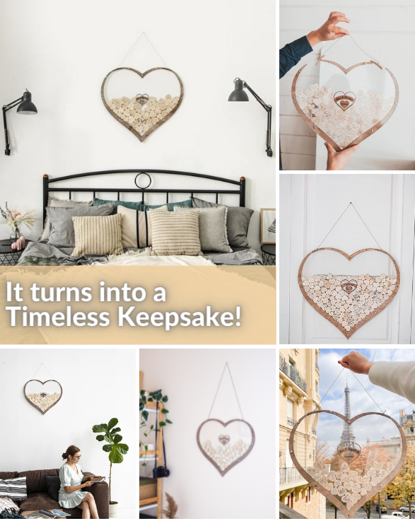 After the ceremony is over, the Heart Guest Book becomes a loving keepsake to treasure and display forever.