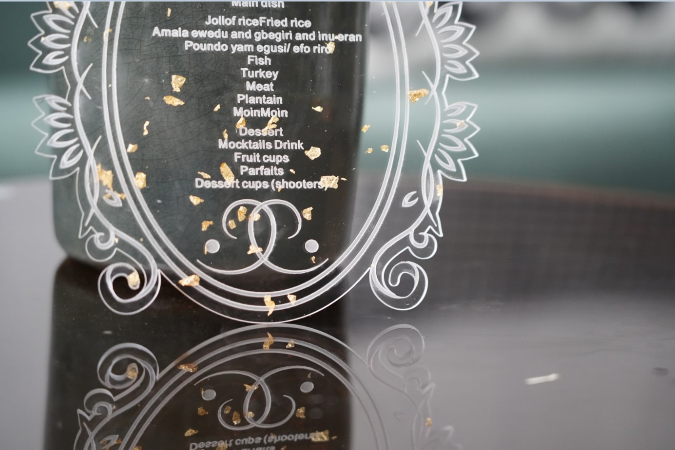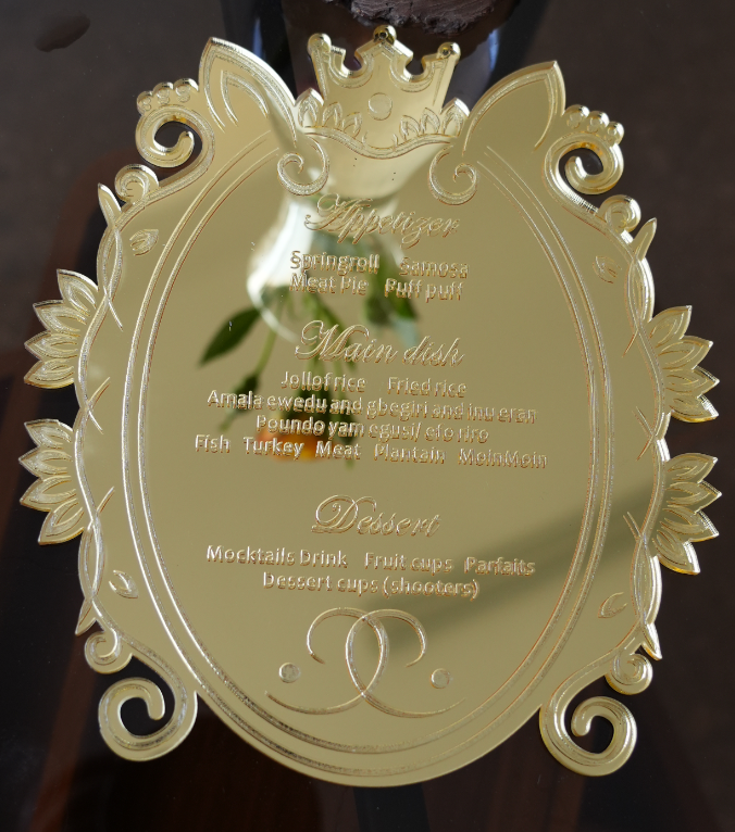 Elevate your reception with the Handcrafted Custom Acrylic Table Menu—a stunning fusion of design and detail. Choose the Clear finish for a sleek, modern vibe or the Gold Mirror for a bold, glamorous touch that dazzles with every glance.