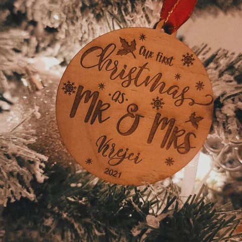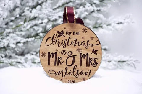 Capture the magic of your first Christmas as a married couple with this beautifully engraved wood ornament. Personalized just for you, it's more than decoration—it's a memory in the making.