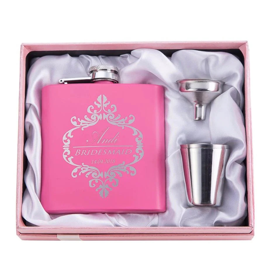 "These flasks were such a hit with my bridesmaids! The personalization made it truly special and memorable. Beautifully made and perfect for our wedding day."