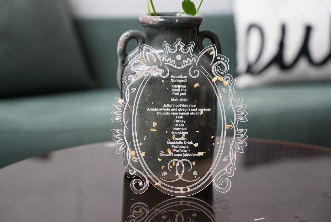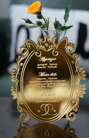Elevate your reception with the Handcrafted Custom Acrylic Table Menu—a stunning fusion of design and detail. Choose the Clear finish for a sleek, modern vibe or the Gold Mirror for a bold, glamorous touch that dazzles with every glance.