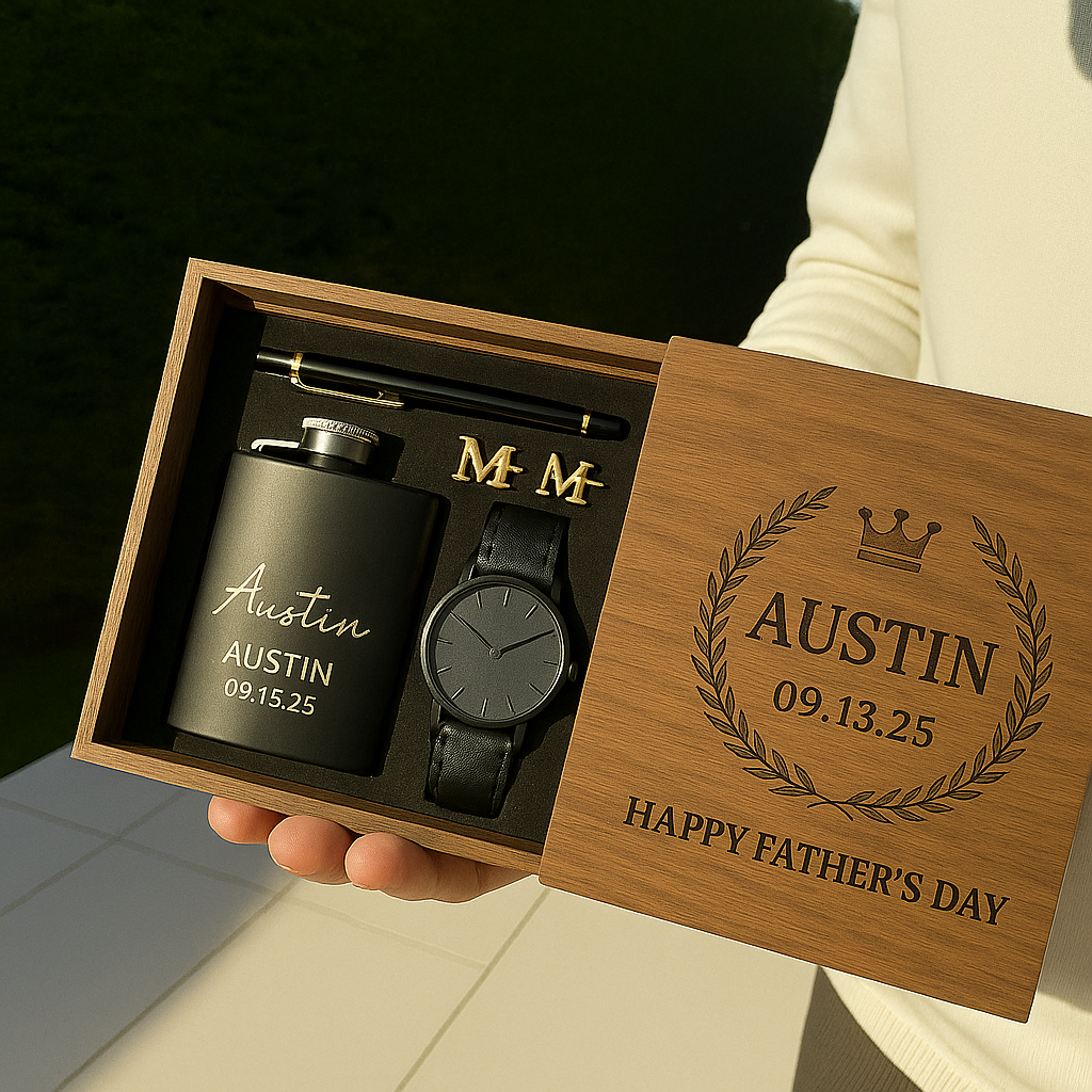 From a watch engraved with his name to cufflinks that carry his initials, every item in this Father’s Day Bundle is chosen to make him feel seen, appreciated, and celebrated. It’s a curated collection that’s thoughtful, stylish, and unmistakably personal.