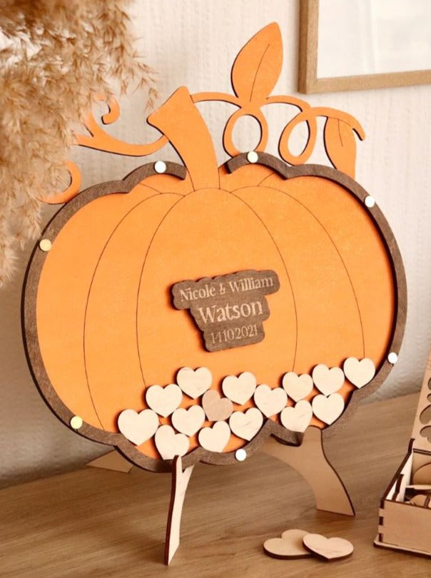 Celebrate your love with a seasonal twist—this pumpkin-shaped guest book is the perfect way to greet your guests with fun, charm, and creativity. It’s a conversation starter they’ll love signing.